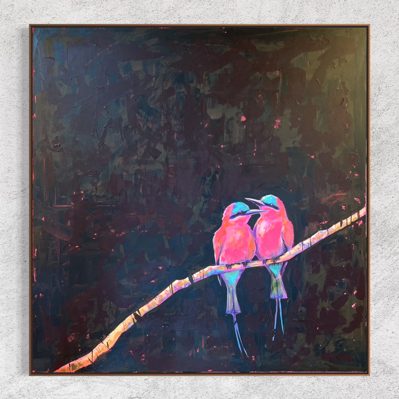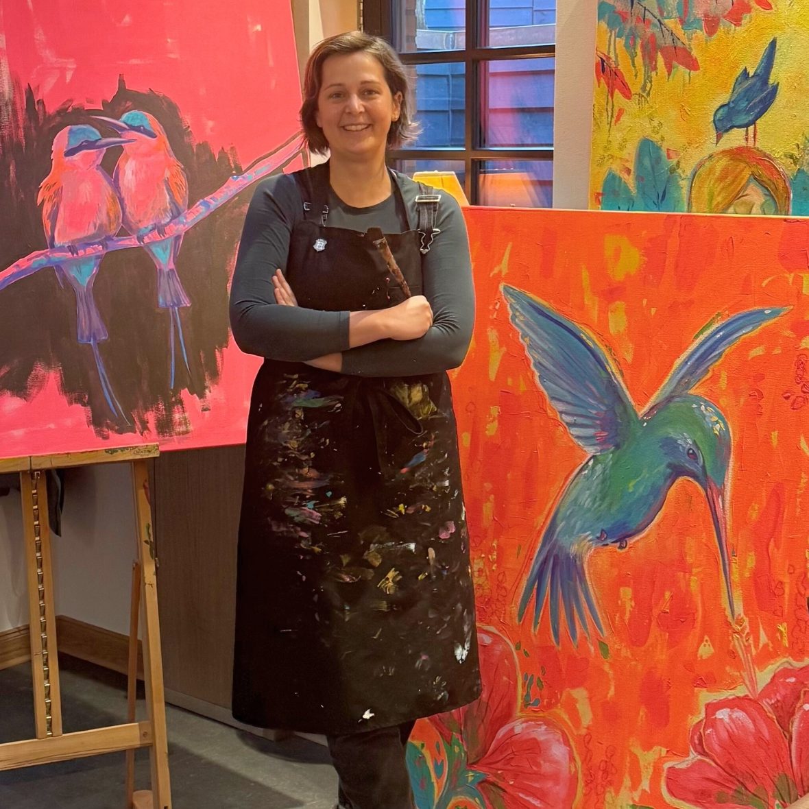 Cindy Fröhlich steht für eine Malerei, in der Farbe nicht nur Gestaltungsmittel, sondern Ausdruck von Lebendigkeit ist. Ihre Werke zeichnen sich durch intensive Farbigkeit, leuchtende Kontraste und eine charakteristische pinke Grundierung aus, die vielen Arbeiten eine pulsierende Tiefe verleiht.